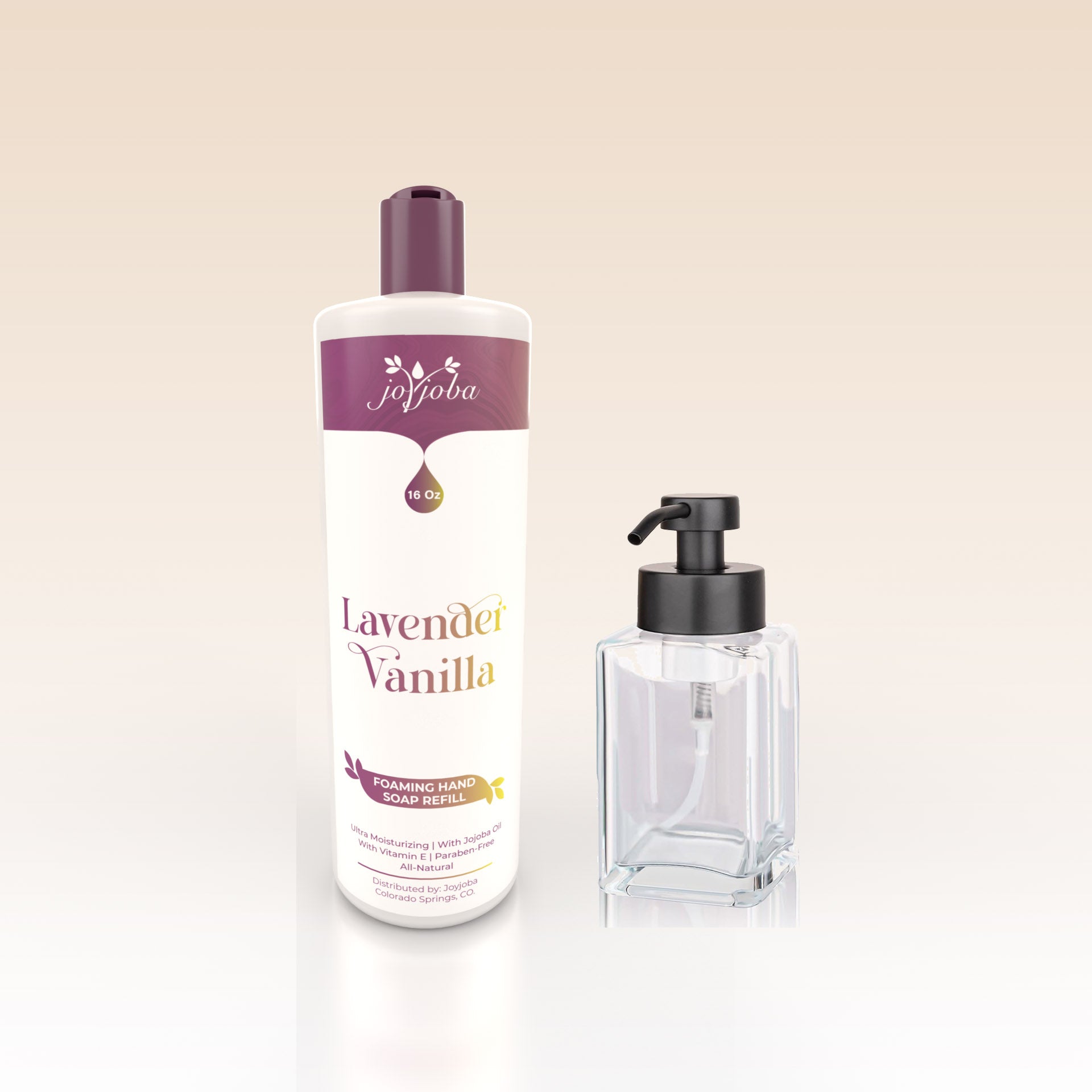 Lavender Vanilla Foaming Hand Soap brings calm to your daily routine. The sweet scent of vanilla and freshly cut lavender fills the air while the rich foam washes away impurities, leaving your hands clean, smooth, and comforted with every use.